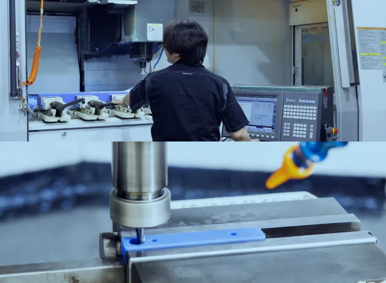 マシニングセンタは、回転工具を使用してフライス削りや中ぐり、穴あけ、ねじ立てといった切削加工などの複数の工程を、一台の機械で自動的に行うことができる機械です。 加えてマシニングセンタには、自動工具交換装置が搭載されています。従来の機械では、工具交換などの作業に時間を大きく取られていましたが、これにより機械の自動化がされ生産性の向上に繋がっています。